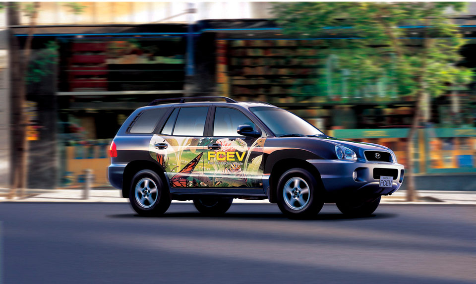 У 1998 році автовиробник звернув увагу на стрімку популяризацію електричних автомобілів, що працюють на водні. Було прийнято рішення розробити власну водневу модель. На створення концепту було потрібно 2 роки. Компанія представила Santa Fe FCEV. Автомобіль оснащувався силовою установкою на 75 кВт, а також баком для водню з тиском 350 бар. Автономність склала 230 км. Варто відзначити, для початку 2000-х років це були значні показники, але в виробництво концепт все ж не відправили. Причина - відсутність достатньої кількості заправних станцій для таких авто.
