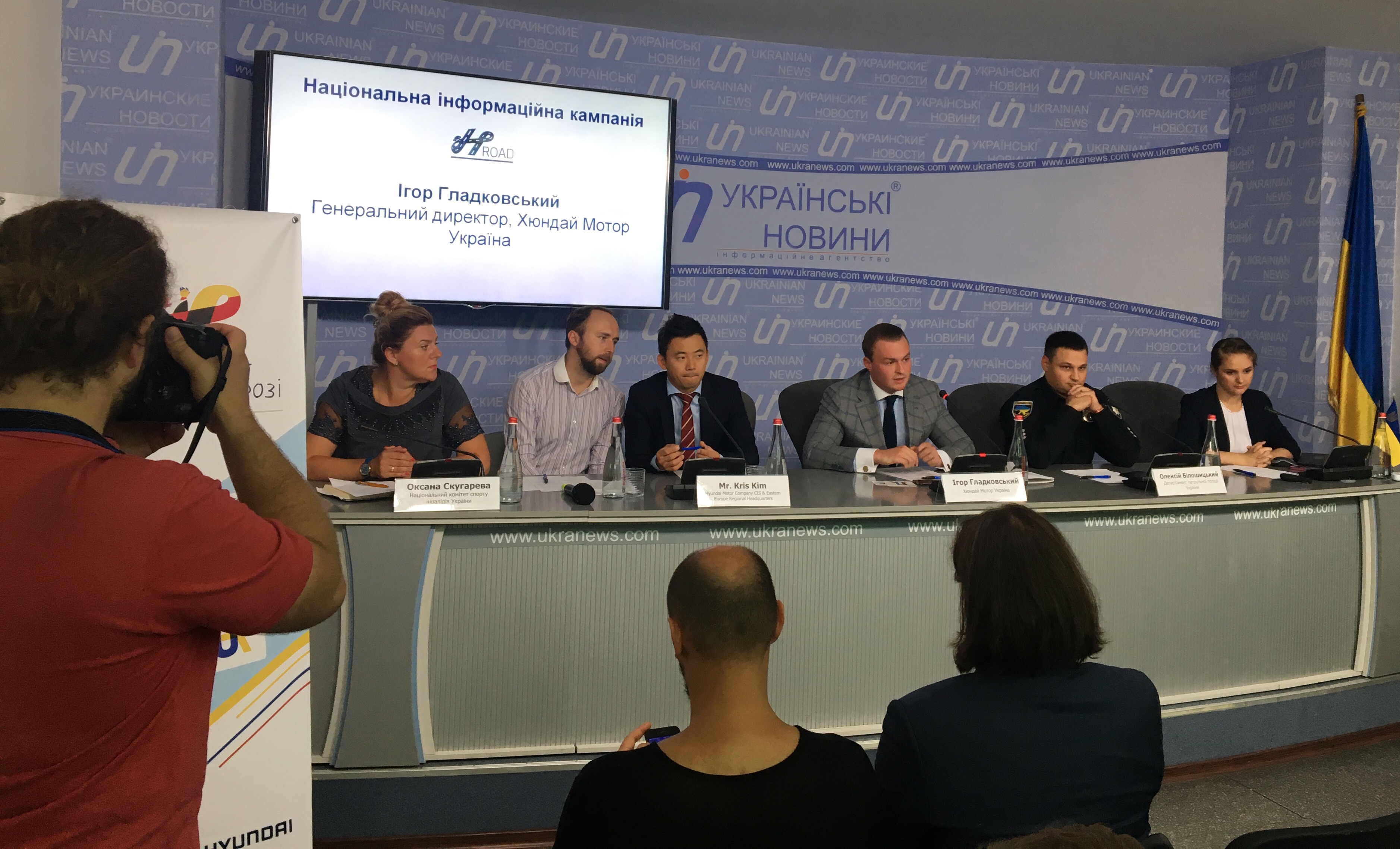 Серпень 2017. Прес-конференція, присвячена старту другого етапу проекту H-Road за участю генерального директора «Хюндай Мотор Україна» Ігоря Гладковського, маркетинг-менеджера регіональної штаб-квартири Hyundai Motor Company CIS & Eastern Europe містера Кіма, першого заступника начальника Патрульної поліції України Олексія Білошицького та віце-президента Національного комітету спорту інвалідів України Оксани Скугаревої