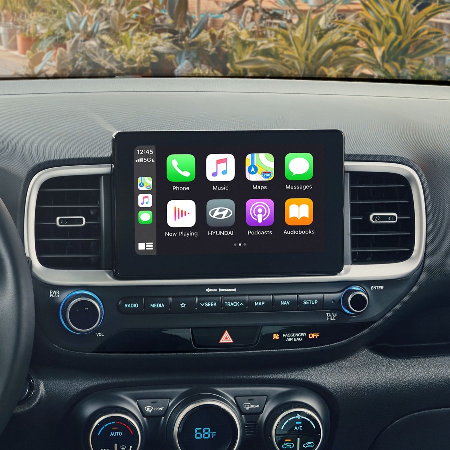 У Hyundai Venue використані передові технології. Мультимедійна система оснащена 8-дюймовим кольоровим сенсорним екраном. Ви можете підключити телефон до внутрішнього екрану, на якому будуть відображатися основні функції смартфону.