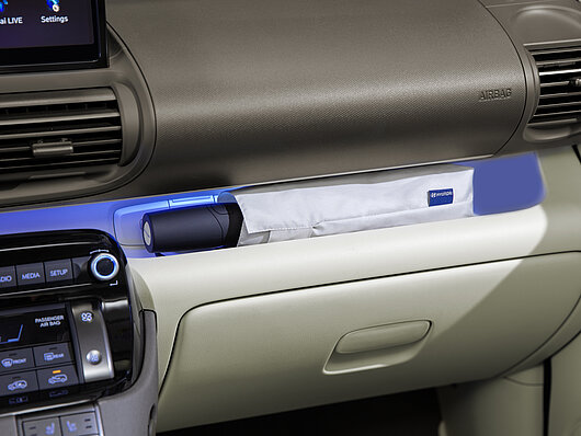 Логотип Hyundai: куполоподібна наклейка на ручці парасольки; Логотип у вигляді прапорця на рукаві; Друк на застібці